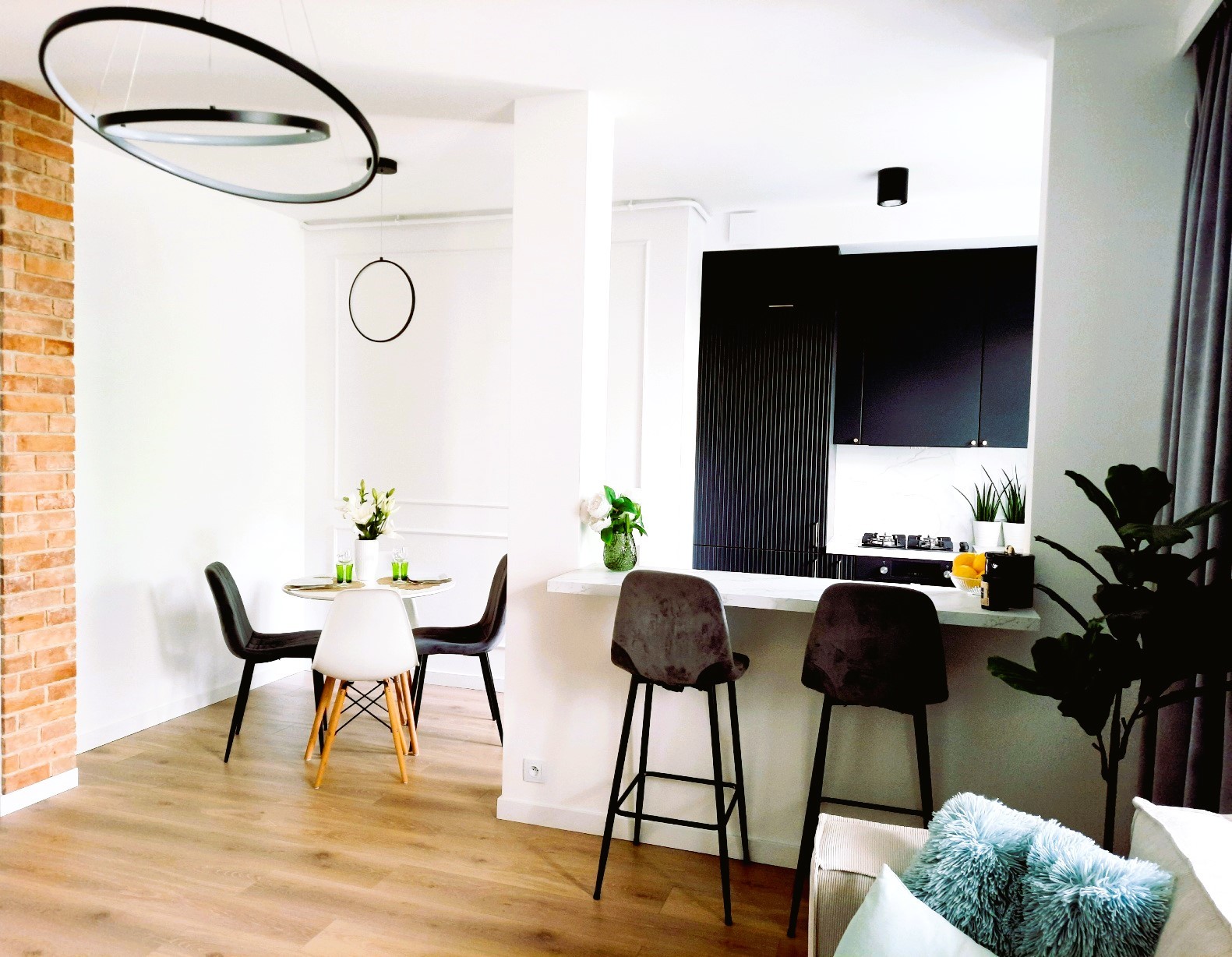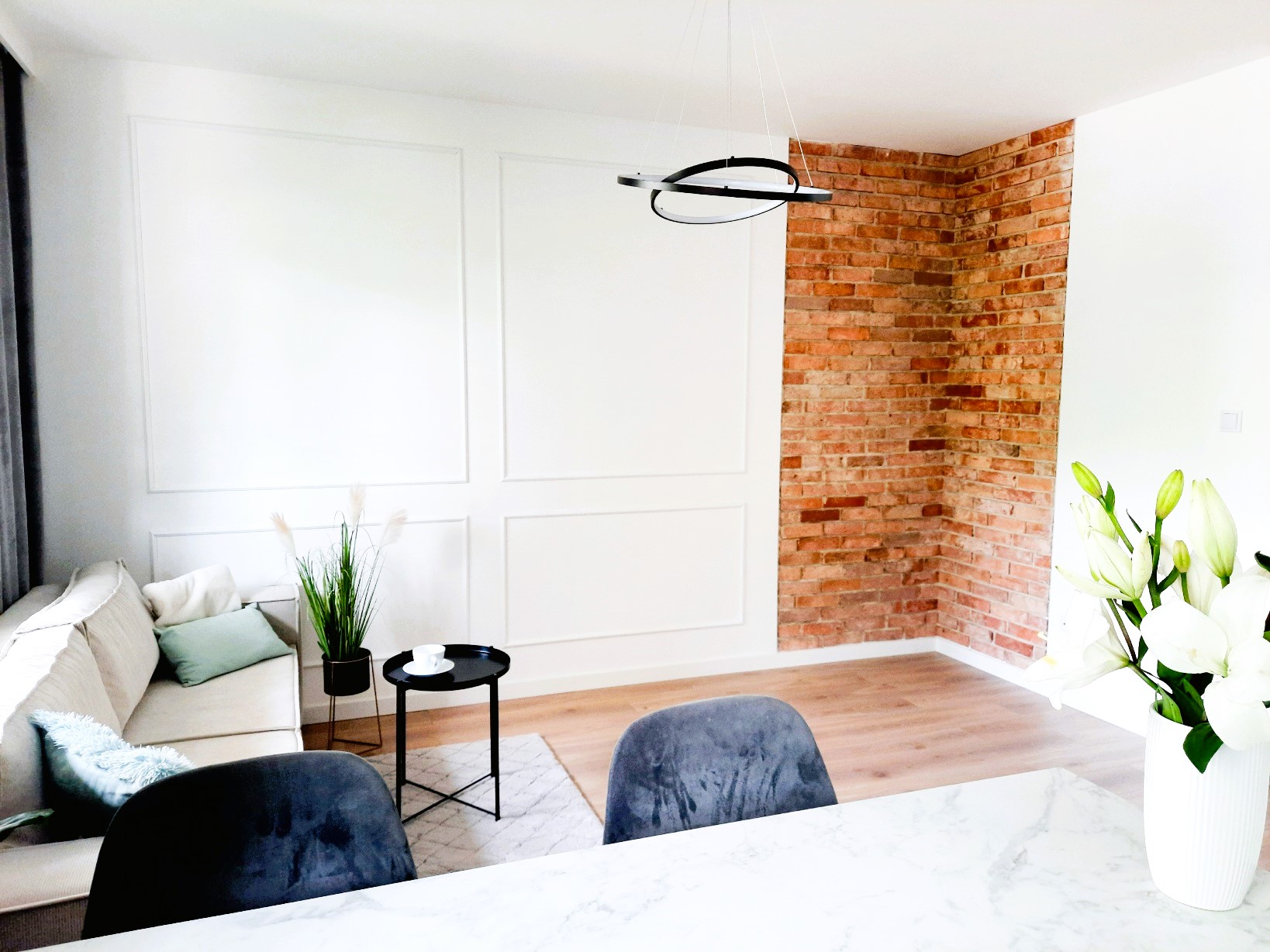 • Estetyczne i funkcjonalne wykończenie w wysokim standardzie – przytulne wnętrze, naturalna cegła i sztukaterie nadają wnętrzu charakter, a przemyślany układ gwarantuje wygodę na co dzień.