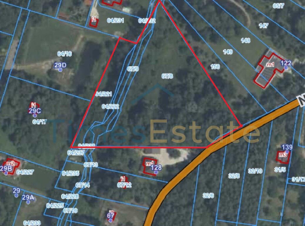 W głębi działek płynie rzeczka która oddziela dwie działki o łącznej powierzchni 7.999 m2, od pozostałych dwóch o łącznej powierzchni 1629 m2.