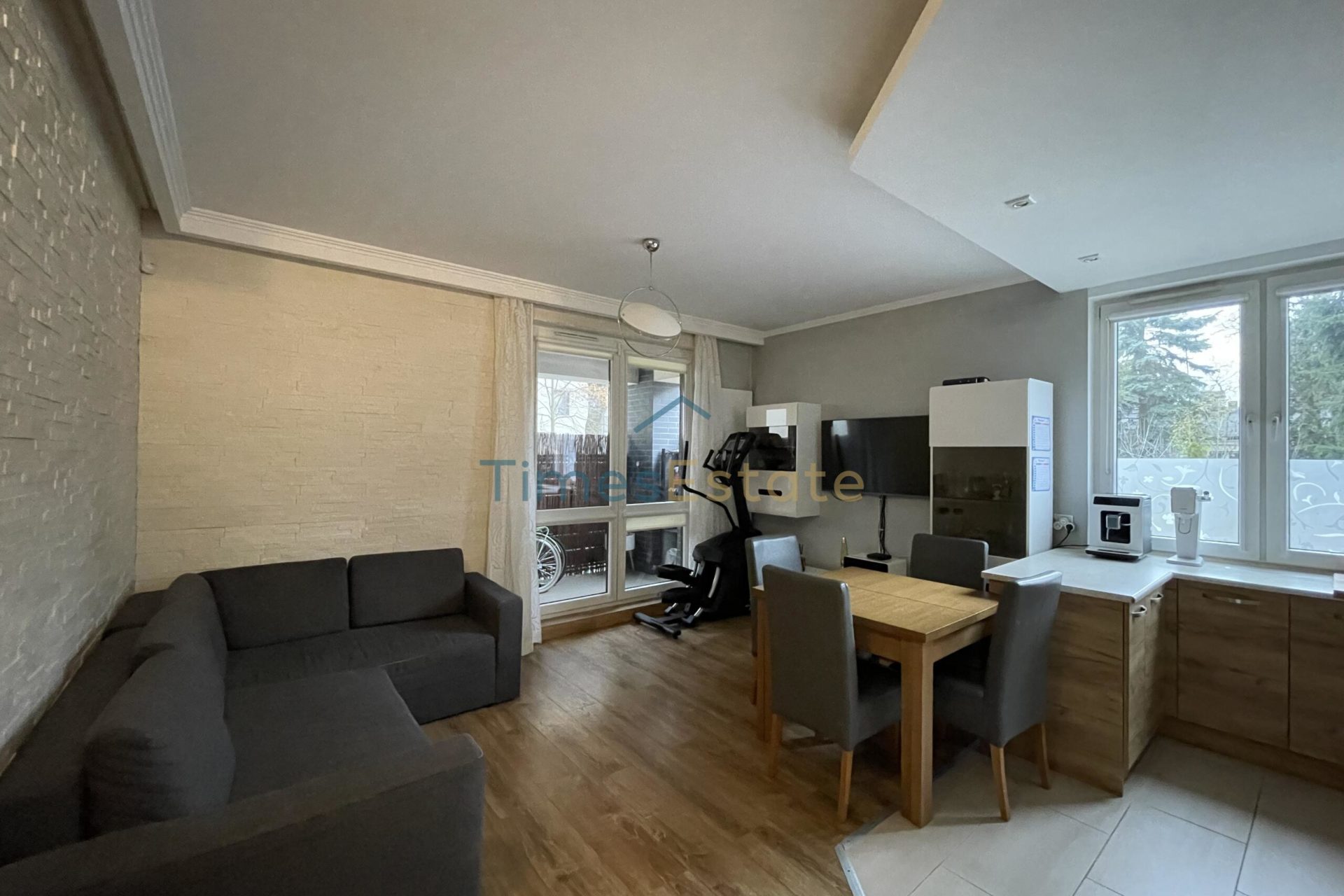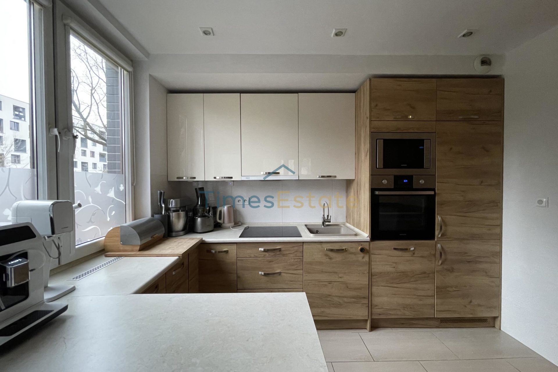 Mieszkanie położone jest na wysokim parterze w 4 piętrowym bloku z 2015 roku. Osiedle jest zamknięte, z całodobową ochroną. Dodatkowym atutem jest jego kameralność ponieważ składa się jedynie z dwóch budynków. Wewnątrz osiedla znajdziemy zadbane patio i dużo zieleni.