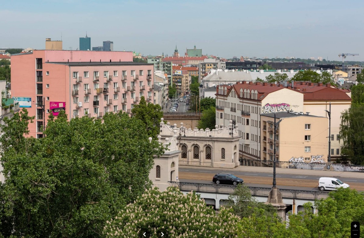 • zadaszony balkon z widokiem na Most Świętokrzyski i Stadion Narodowy